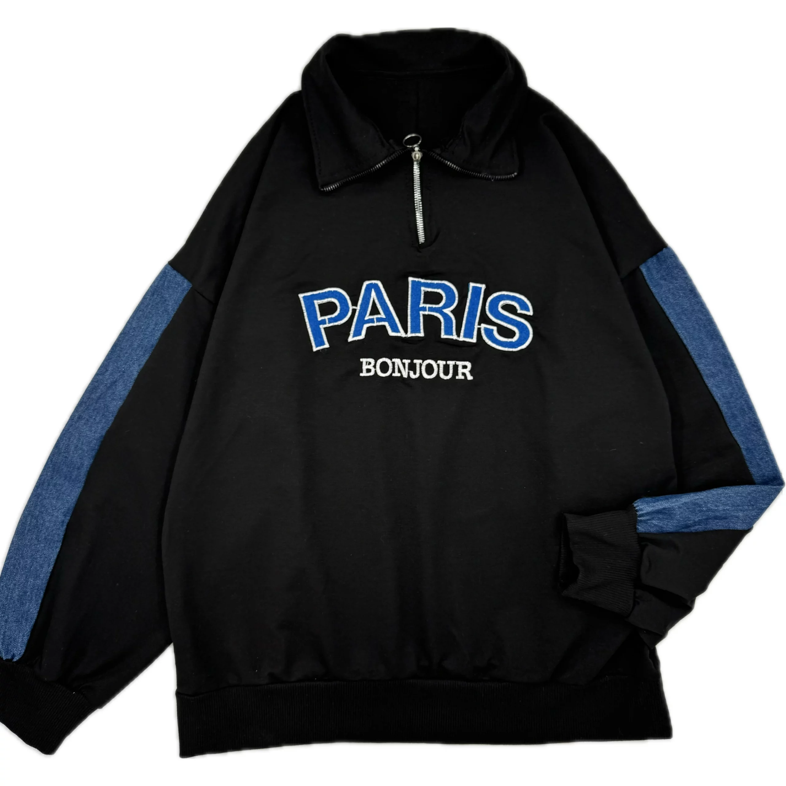 دورس نیم‌زیپ مشکی با طراحی مینیمال و خوش‌فرم خود، یکی از مدل‌های پرطرفدار میان طرفداران استایل‌های خیابانی، اسپرت و کژوال محسوب می‌شود. در قسمت جلوی لباس، نوشته‌ی Paris با گلدوزی برجسته دوخته شده که جلوه‌ای خاص و لوکس به آن داده است.