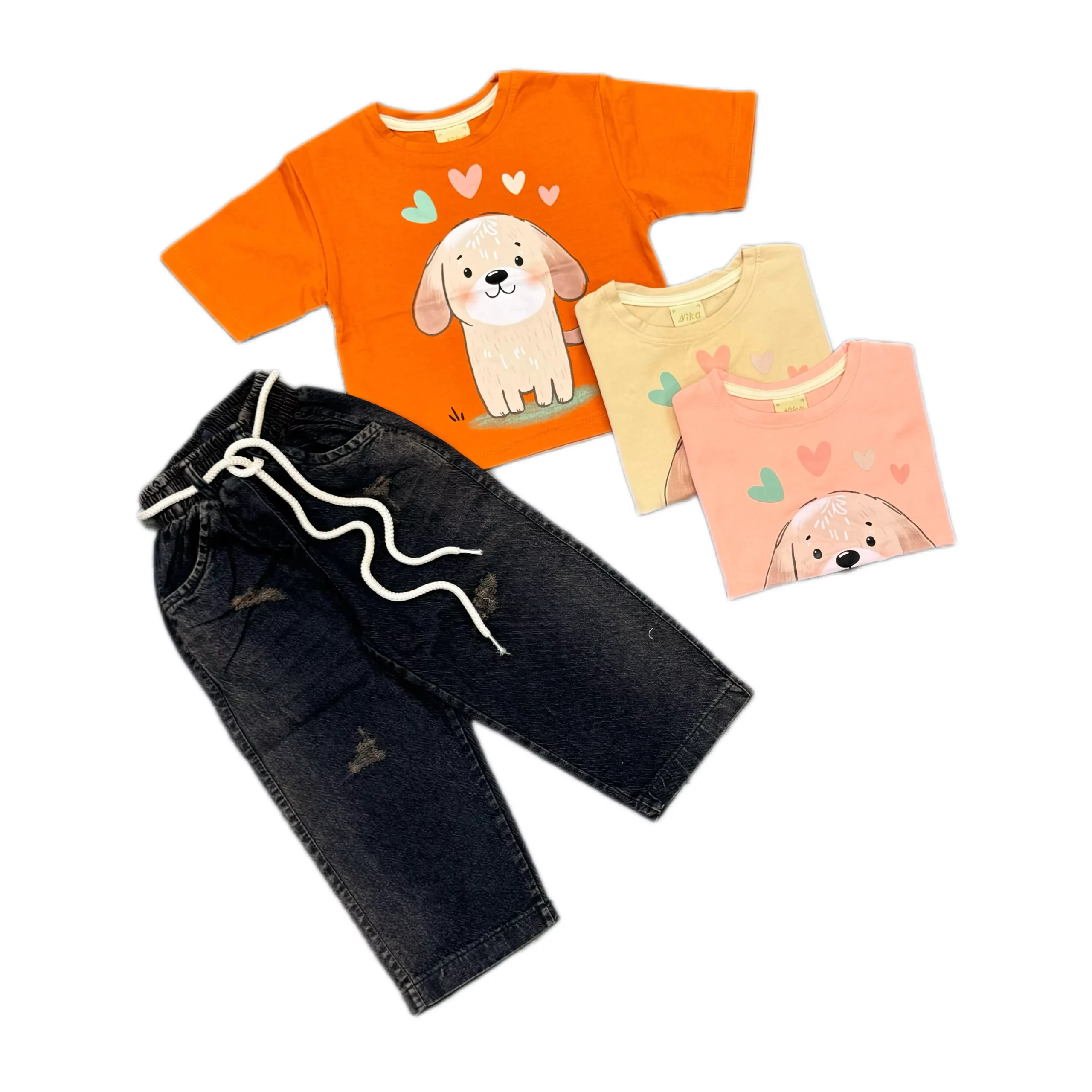 ست تیشرت و شلوار جین دخترانه طرح سگ | کد 1307/1308 (ارسال رایگان)