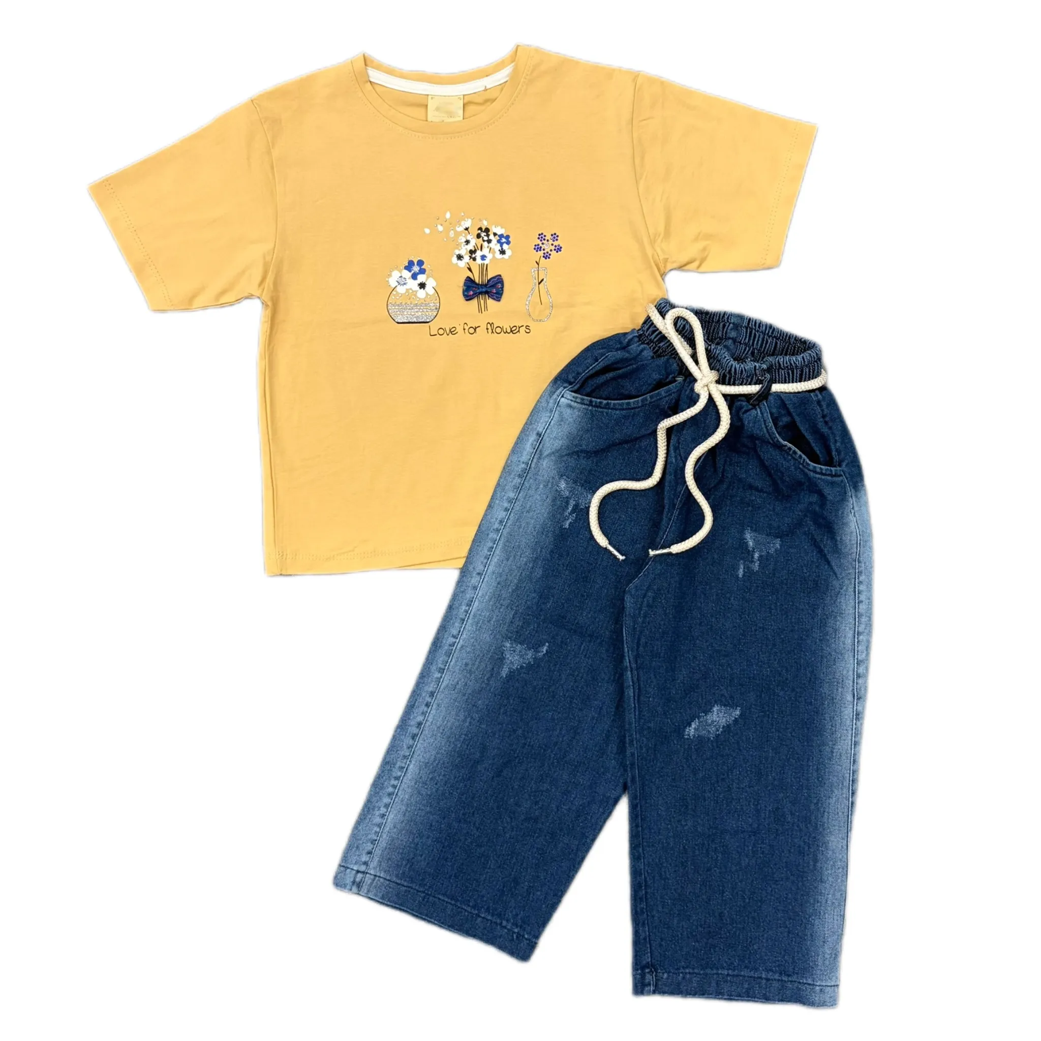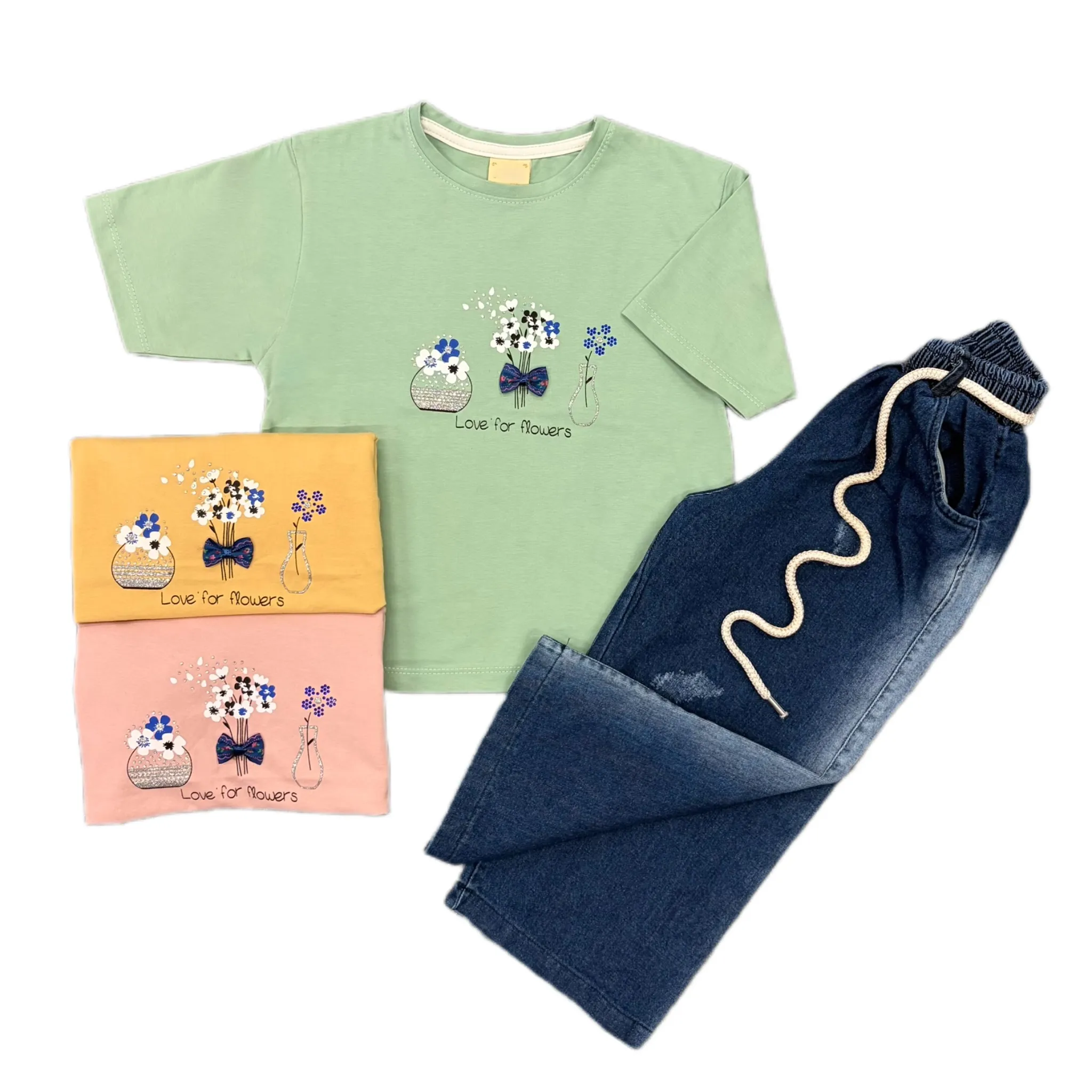 ست تیشرت و شلوار دخترانه flowers| کد 132010 /131900(ارسال رایگان)