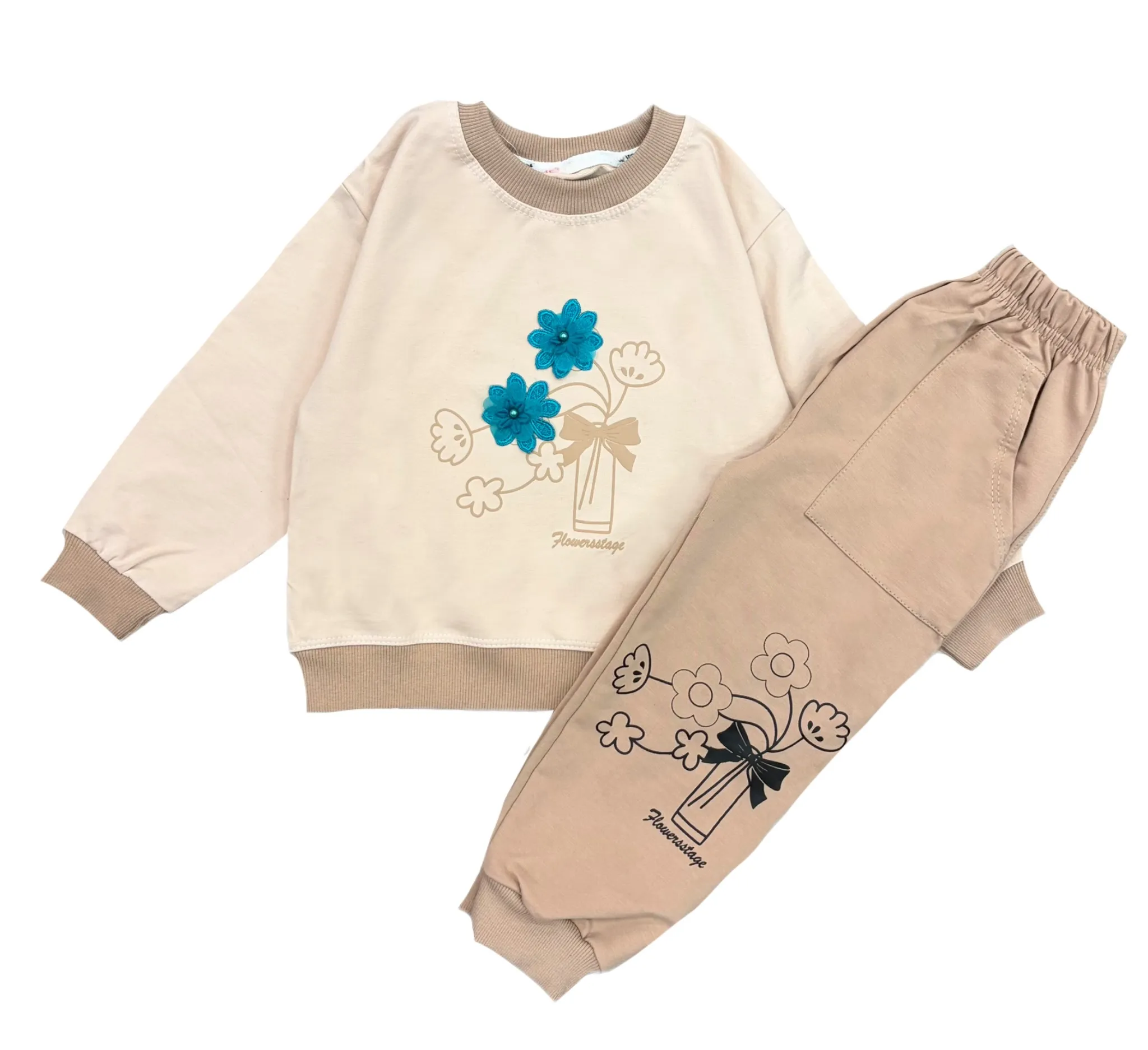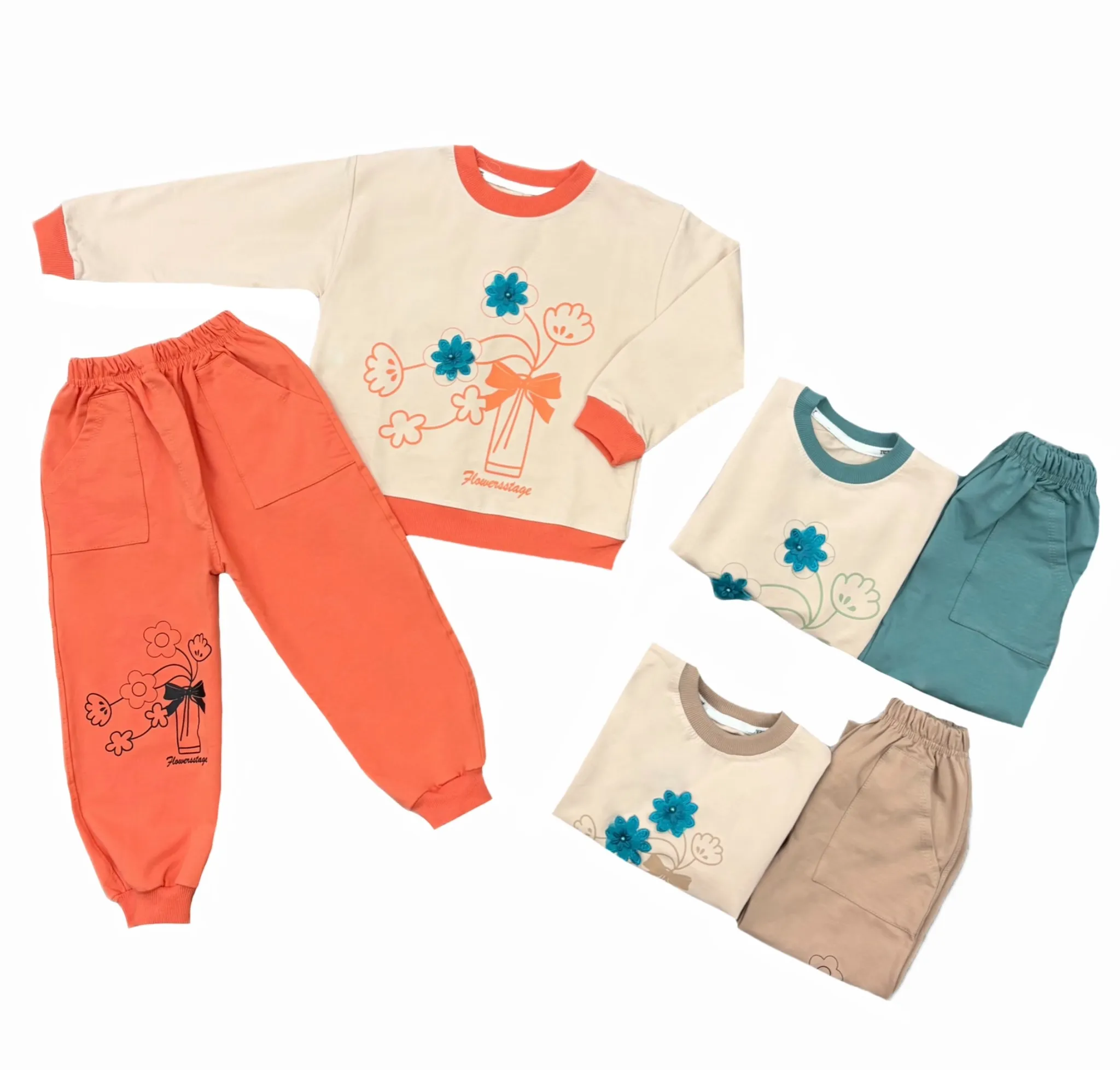 ست دورس و شلوار دخترانه طرح گلدان | کد 4640 / 4648 (ارسال رایگان)