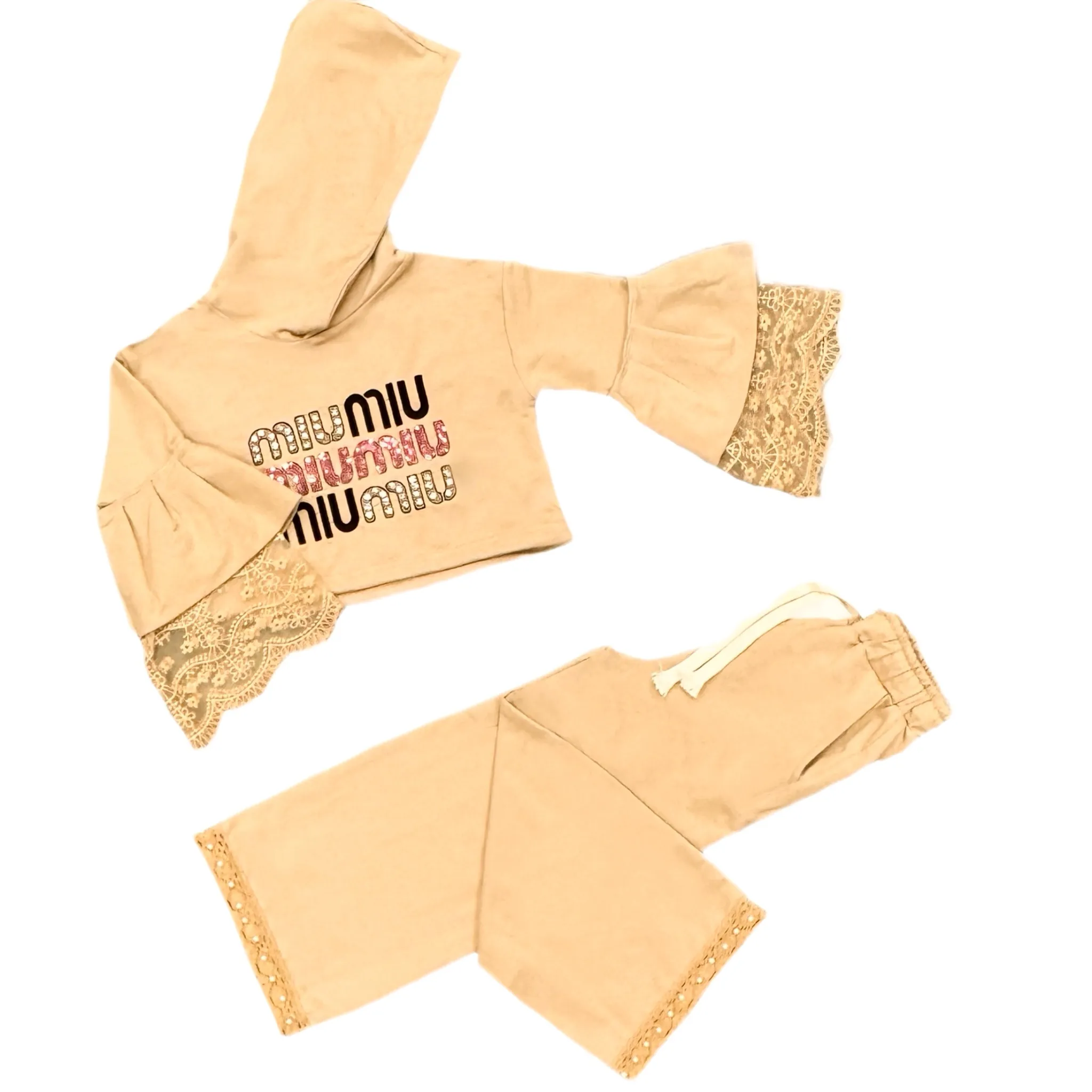 ست دورس و شلوار دخترانه miu miu گیپور دار | کد 401313 (ارسال رایگان)