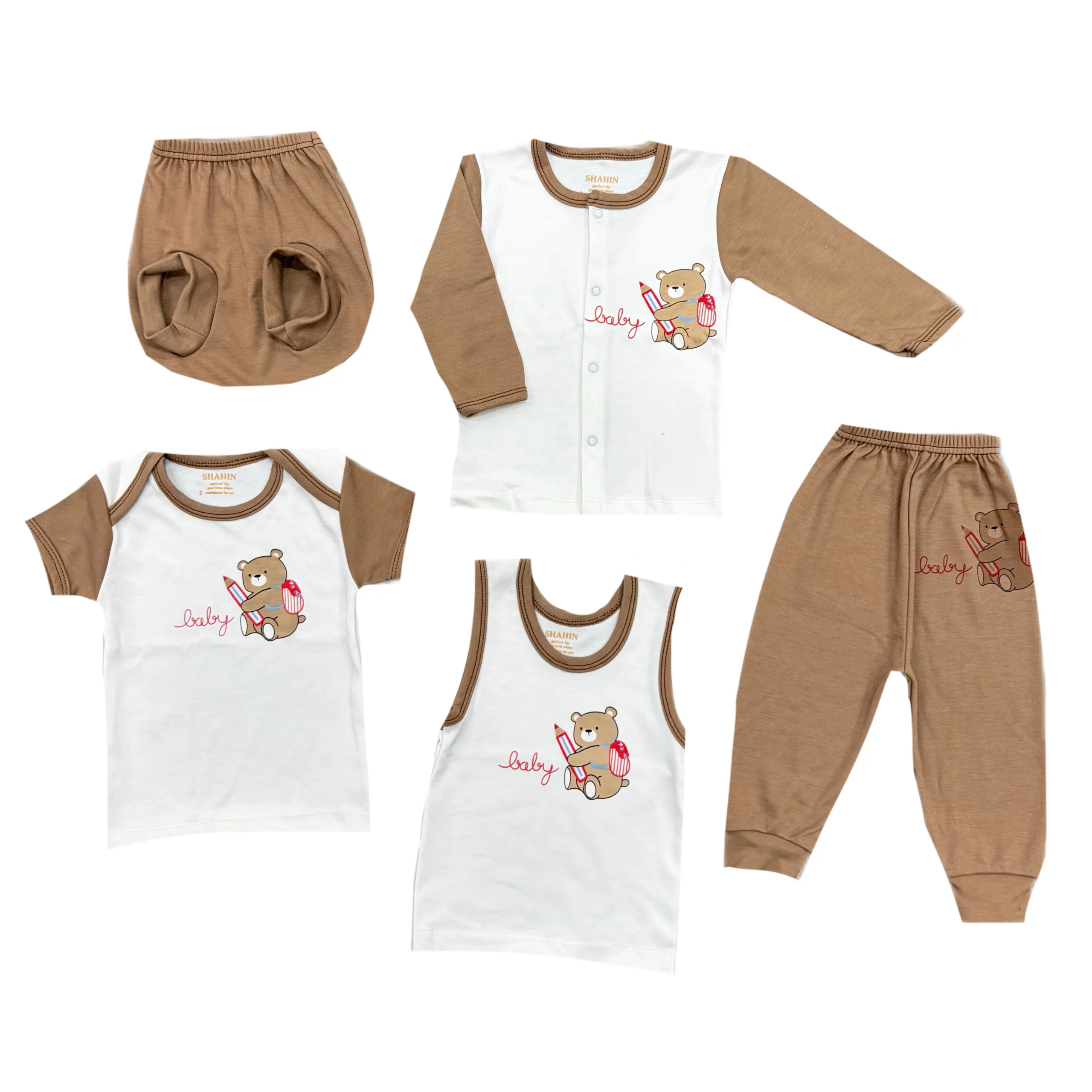هر ست 5 تکه نوزادی معمولاً شامل موارد زیر است:
