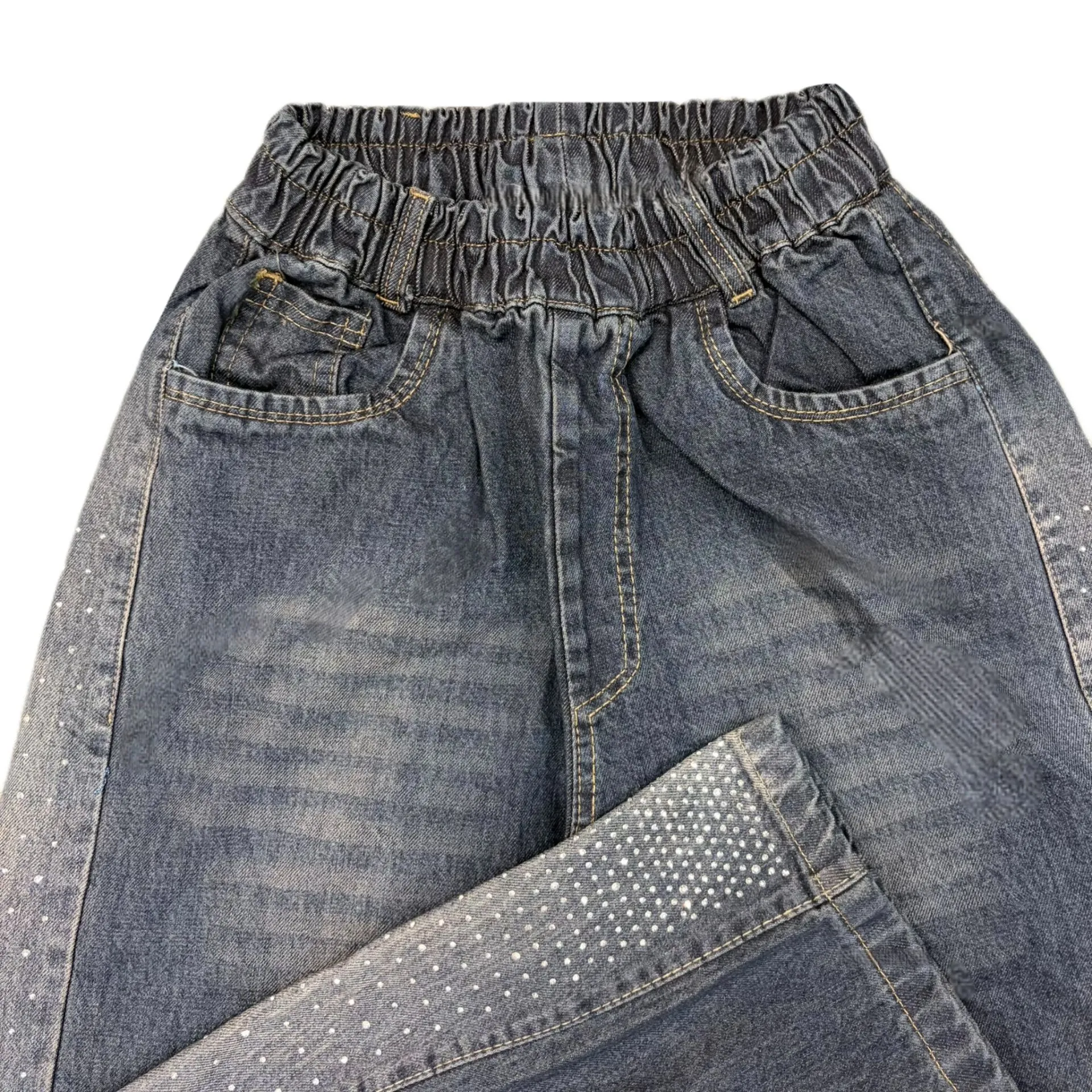 شلوار جین دخترانه بگ کنار نگین کمر کشی/کد 8521 (ارسال رایگان )
