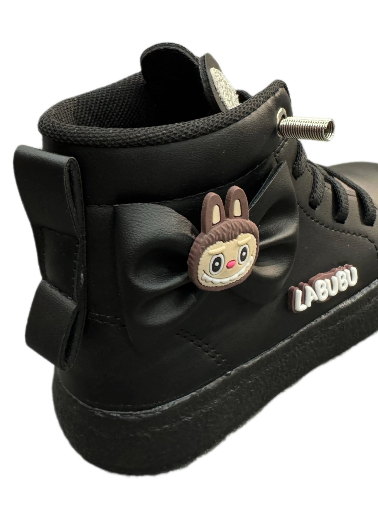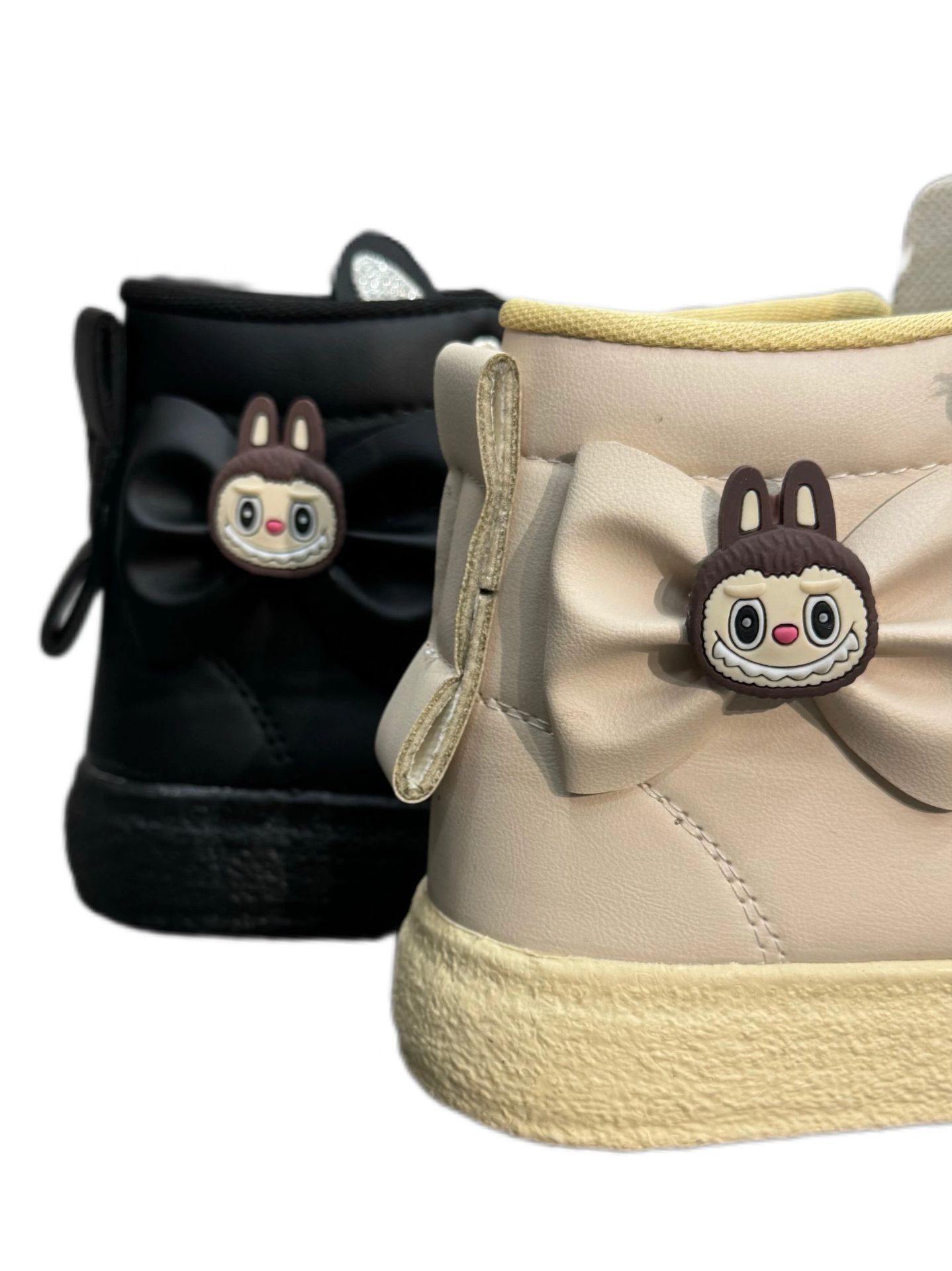 در نگاه اول، پاپیون ظریف و زیبایی که در کنار بوت قرار دارد، توجه هر بینندهای را جلب میکند. این پاپیون به کفش جلوهای دخترانه، شاد و لطیف میدهد و آن را به گزینهای عالی برای دختران خوشسلیقه تبدیل میکند. وجود لوگو و نوشته انگلیسی “Lbobo” در کنار کفش نیز نشانهای از اصالت و برندینگ خاص محصول است که جذابیت ظاهری آن را دوچندان میسازد.