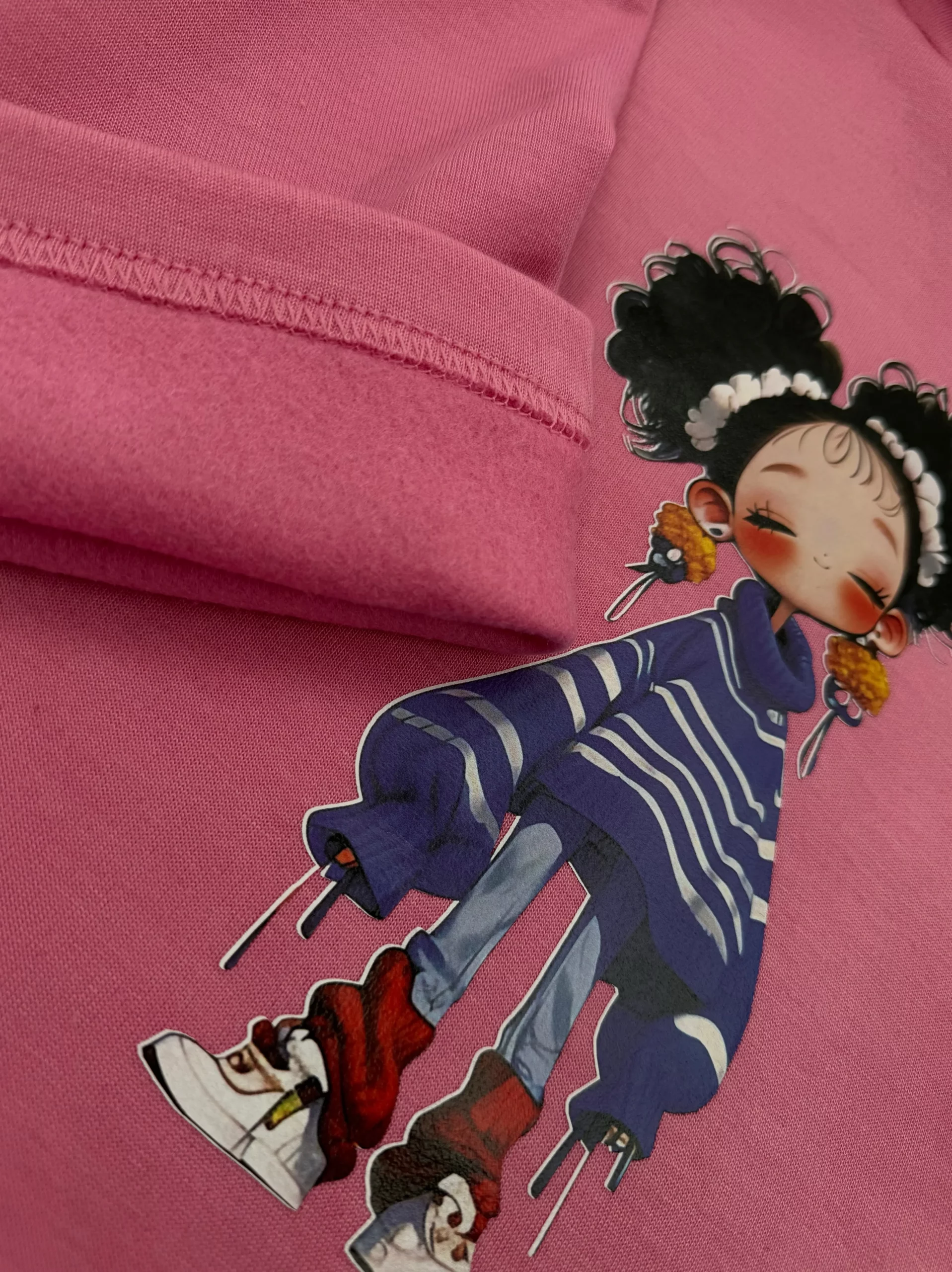 چاپ دخترانه روی وسط سینه مهمترین ویژگی بصری این هودی است. طراحی چاپ به شکلی انجام شده که نه تنها کیفیت بالا دارد، بلکه در شستوشوی مداوم نیز دچار ترکخوردگی یا رنگرفتگی نمیشود. این چاپ ظاهری فانتزی و دخترانه به هودی داده و آن را به یک لباس محبوب بین نوجوانان و جوانان تبدیل کرده است.