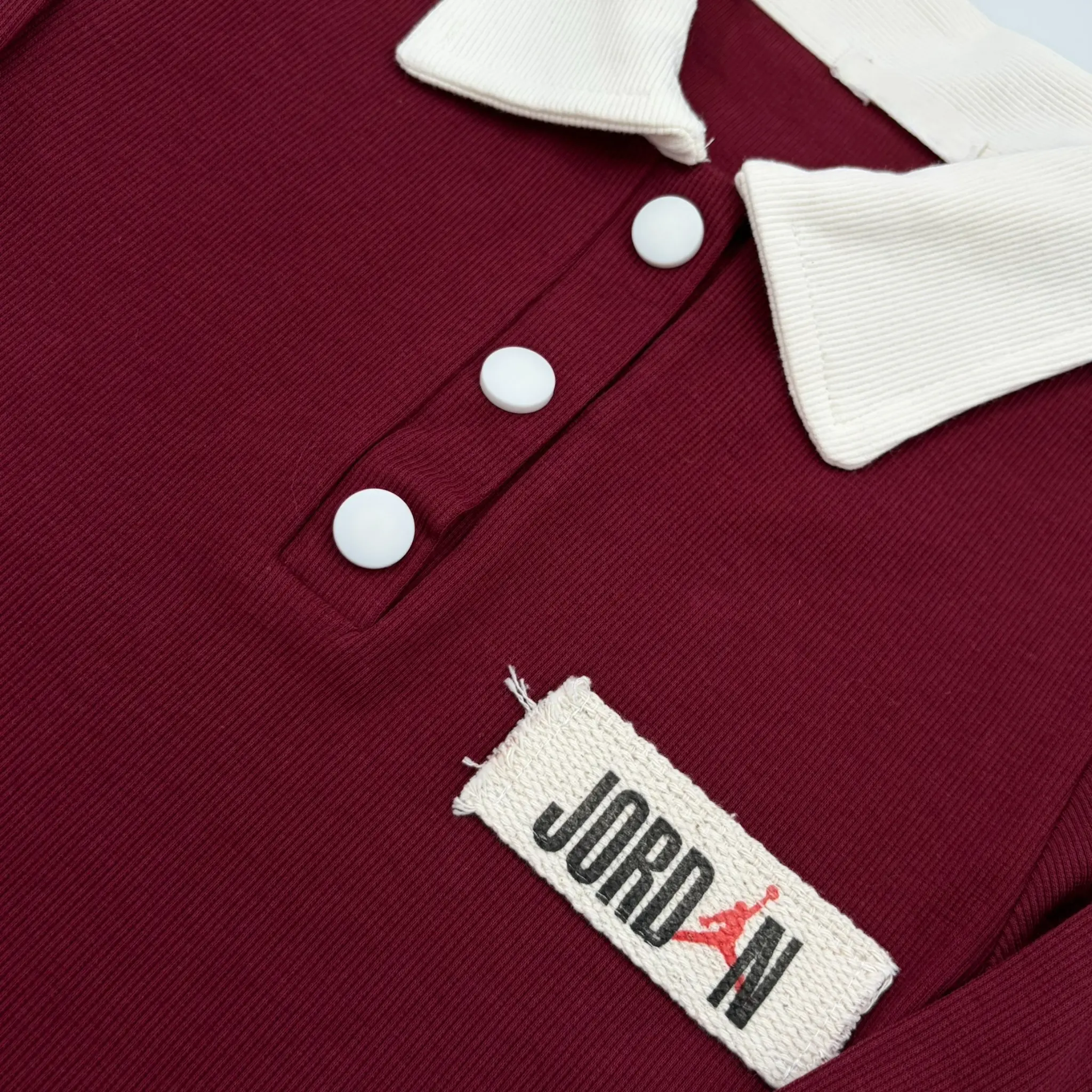کراپ یقه دار جردن با برش کوتاه یا کراپ، ظاهری مدرن و جوان‌پسند به استایل شما می‌دهد. این طراحی باعث می‌شود که لباس هم برای فعالیت‌های روزمره و هم برای استایل کژوال مناسب باشد.