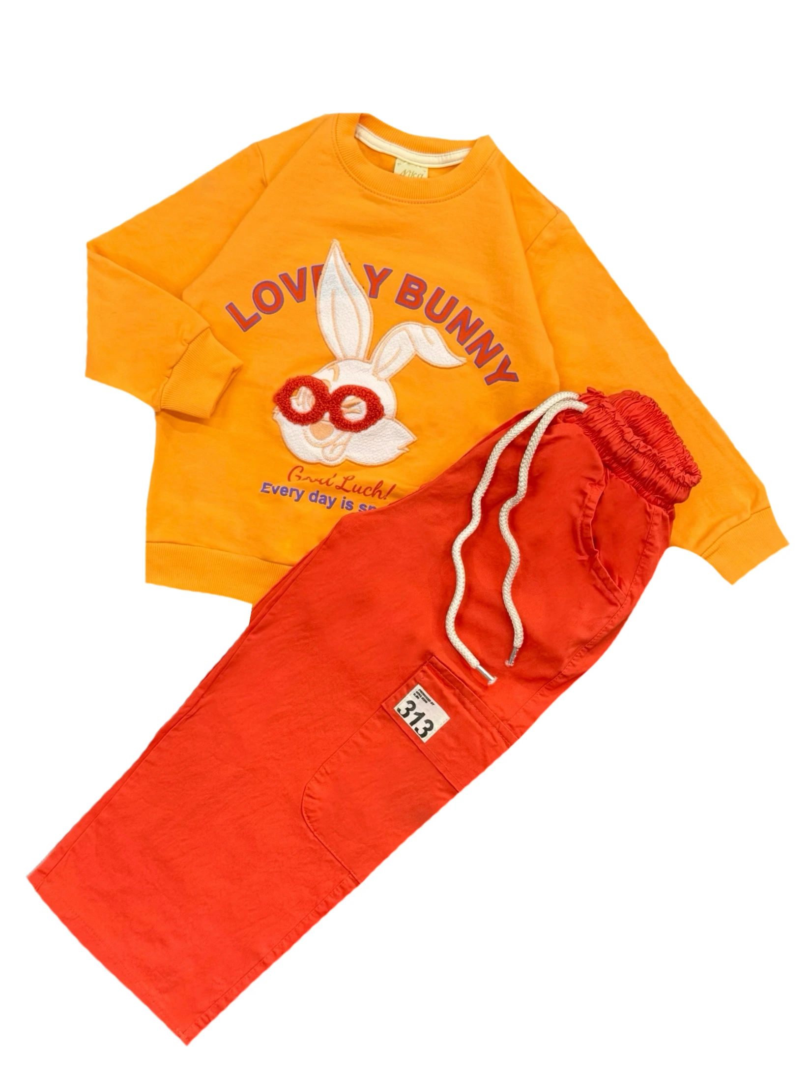 ست 2 تکه خرگوش عینکی | lovely bunny با طراحی جذاب، کیفیت بالا و سه رنگ متنوع کرمی، صورتی و نارنجی، انتخابی عالی برای والدینی است که به دنبال لباسی راحت و شیک برای کودکشان هستند. این ست با داشتن شلوار کتان کمرکش و مکسفیت بالا، آزادی حرکت و دوام را به بهترین شکل ارائه میدهد و میتواند در فصول مختلف سال مورد استفاده قرار گیرد.